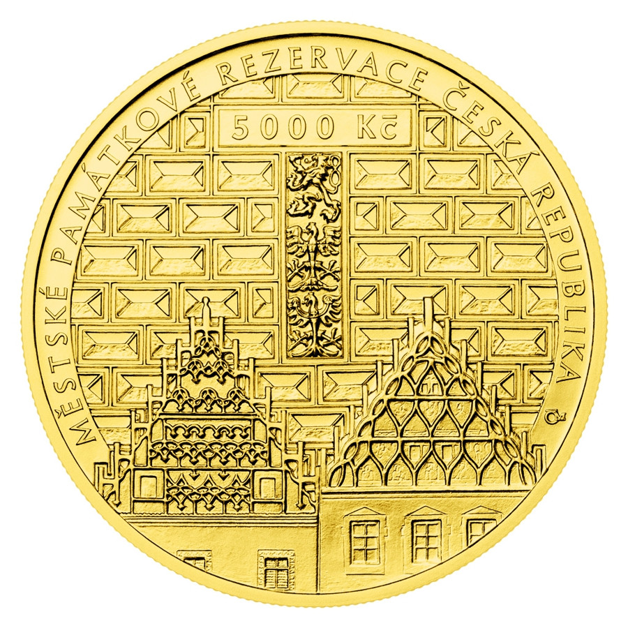 The coin with a nominal value of CZK 5,000 from the CNB cycle dedicated to the Czech Republic's urban conservation areas features the beauty of the town of Tábor.